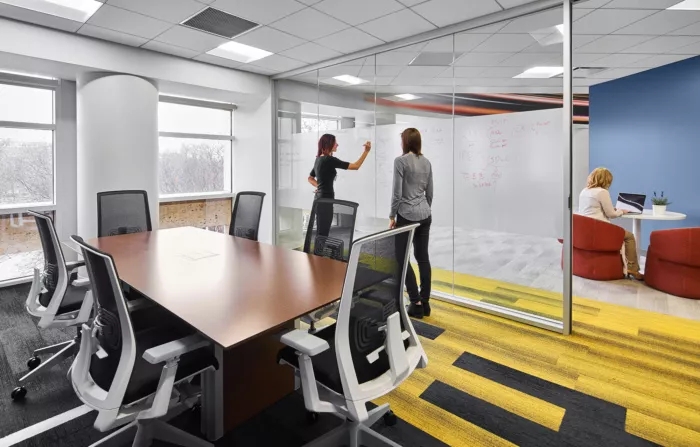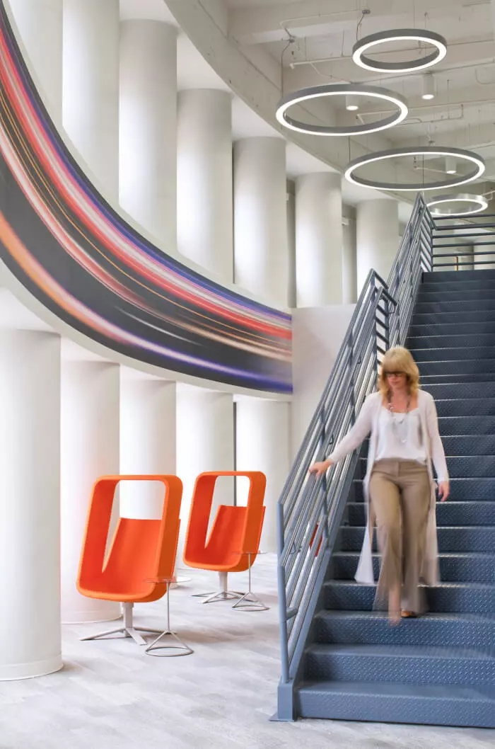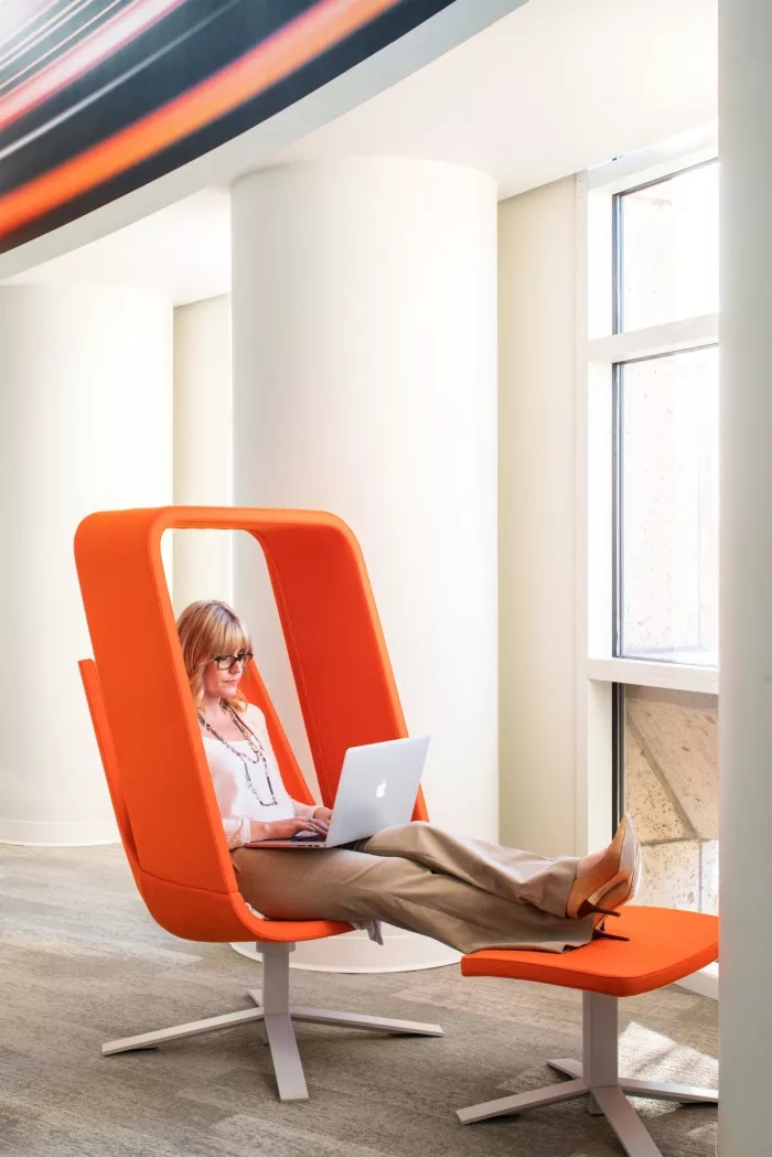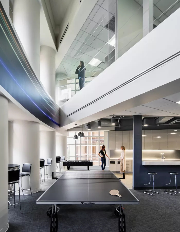 這里每一寸都為員工提供了一個(gè)支持他們成功的環(huán)境,依靠技術(shù)手段,打造鼓勵(lì)員工連接和溝通的氛圍。墻面白板、視頻會(huì)議室、各種空間和家具允許個(gè)人和團(tuán)隊(duì)在辦公室內(nèi)的完美位置進(jìn)行協(xié)作,當(dāng)然,如果想來一場(chǎng)即興的乒乓球比賽也未嘗不可。