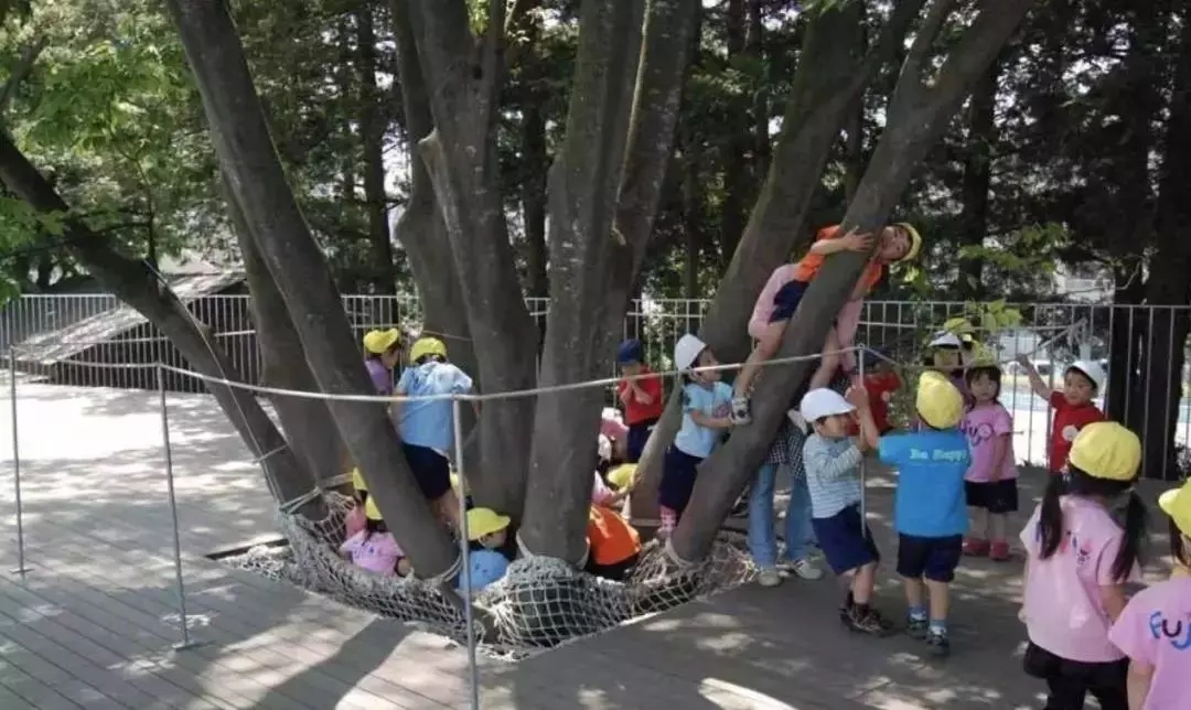 為了鼓勵孩子攀爬和探索自然的本能, 樹的周圍拉上了網(wǎng)。也就是這么個簡單的網(wǎng),讓孩子們樂趣無窮,他們非常喜歡往這個網(wǎng)里鉆......有時候,一棵樹的網(wǎng)可以兜住40個小孩。