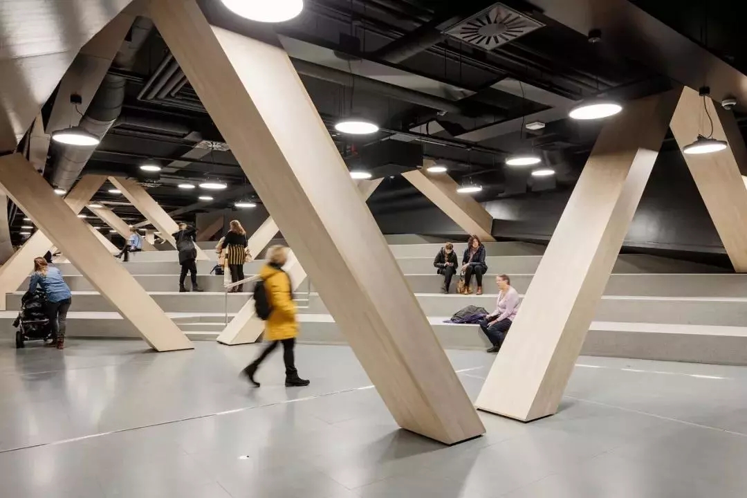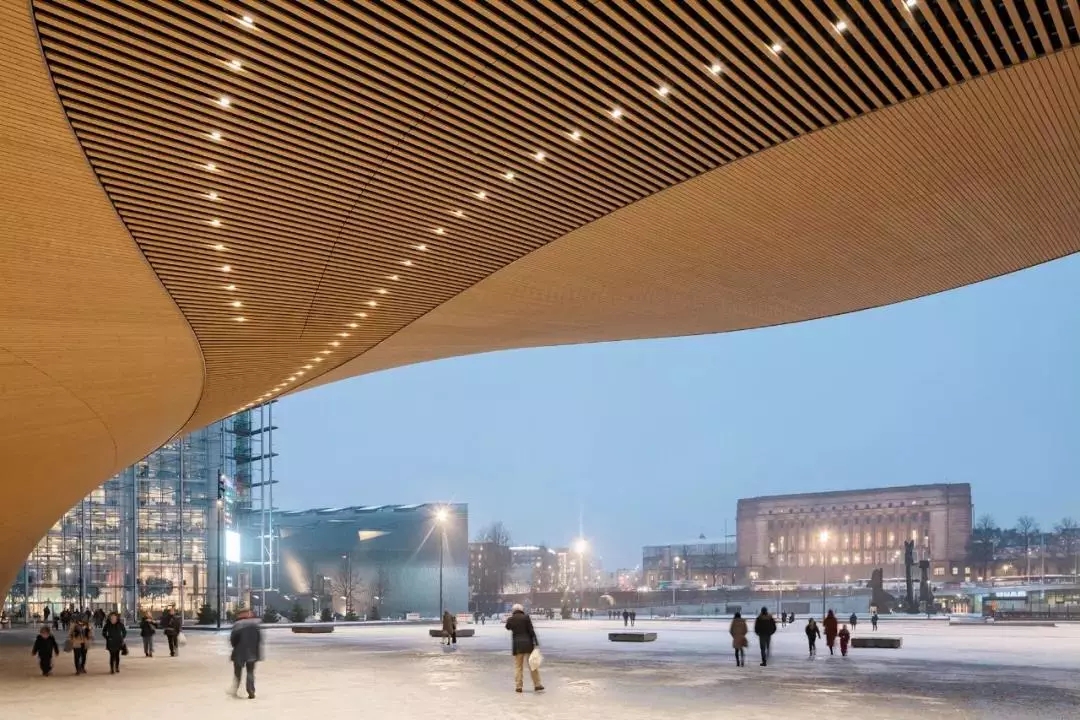 但其實據(jù)設(shè)計頌歌的主建筑師之一南安迪(Antti Nousjoki)講,靈感的出發(fā)點,還是在于考慮它的功能。作為一個地處赫爾辛基市中心,毗鄰熱鬧商圈、火車站和美術(shù)館的公共空間,能夠給市民們帶來什么樣的服務(wù)?又能填補哪些缺失的城市設(shè)施?