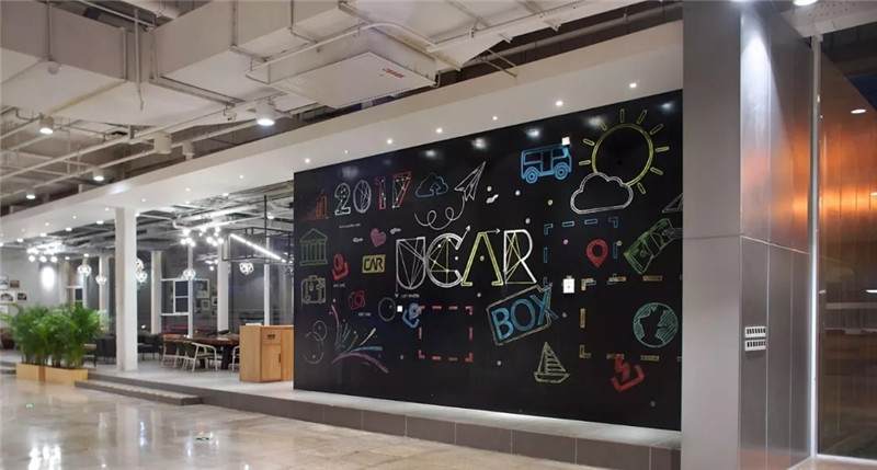 比如這張圖,也是華米科技北京的辦公室,用奧松板開兩個(gè)洞,精巧可愛的睡眠艙趴在墻上,利用兩個(gè)洞把它組成了自行車的輪廓,超萌的壁畫使墻面不再單一,色彩的對(duì)比更加直觀,同時(shí)用太空艙的形式增添趣味點(diǎn),不論是做設(shè)計(jì)師還是做工匠,都要秉持設(shè)計(jì)的理念去進(jìn)行選材和制造工藝,把握好每一個(gè)細(xì)節(jié)。