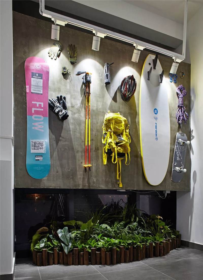 后期我們選用了一些戶外探險(xiǎn)的運(yùn)動(dòng)裝備,包括有一些極限大賽的LOGO,作為裝飾裝在了墻上,能很好地凸顯科技運(yùn)動(dòng)公司的主題,視覺效果也非常好。以上是兩個(gè)相對(duì)完整的案例,接下來還有一部分比較分散的項(xiàng)目有可能沒有形成系列,但是也都有不同的特點(diǎn)。