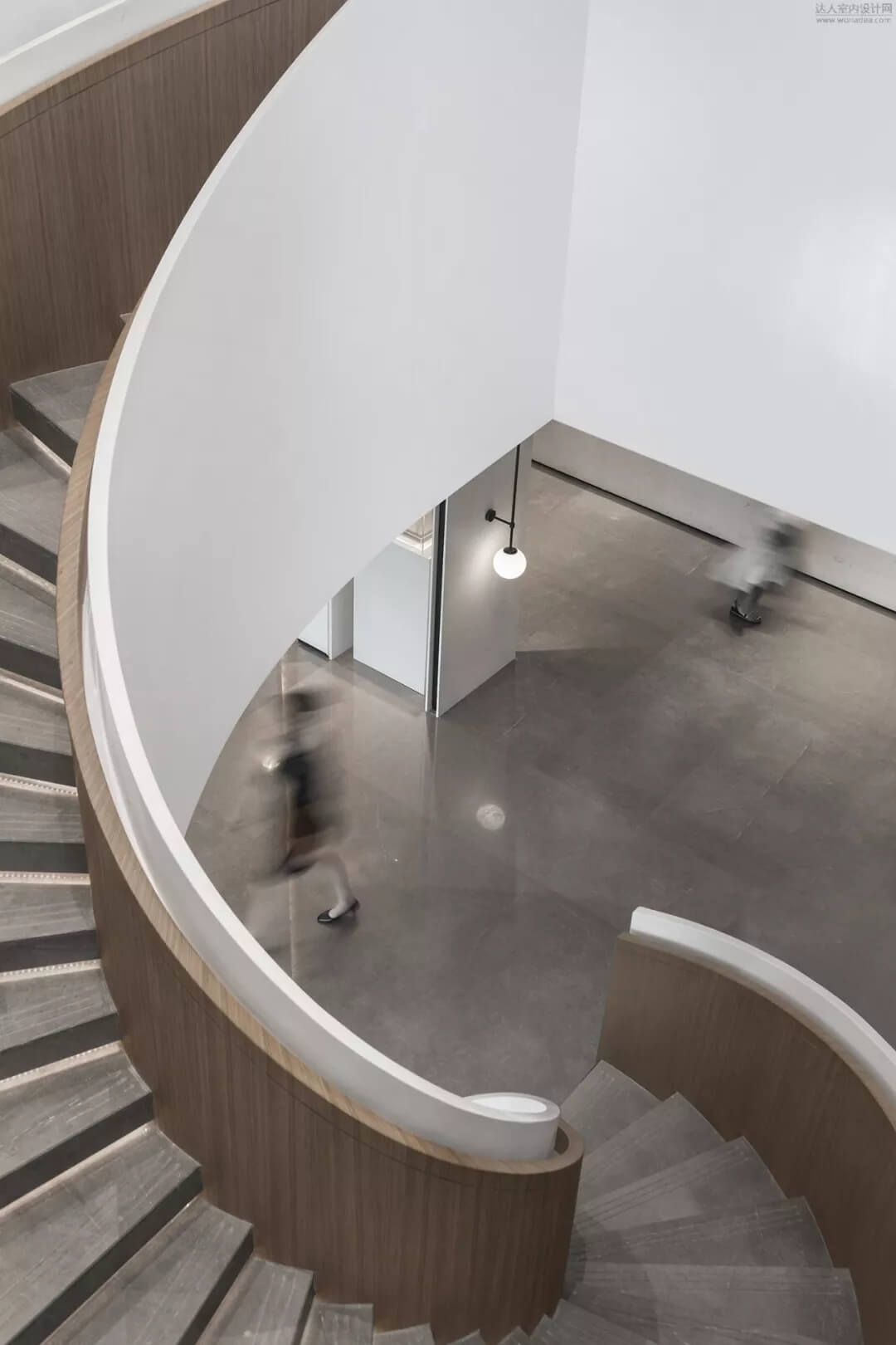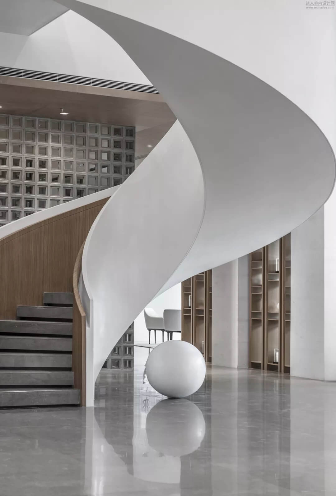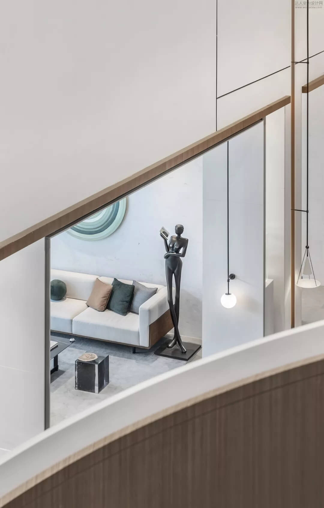 淡雅的白色配以溫馨木色的夢幻般旋轉(zhuǎn)樓梯入口,白色球體與之呼應,旋轉(zhuǎn)而上,動態(tài)感的景色盡收眼底,格子狀猶如延續(xù)的·星際穿越,感受平衡時空不同維度的交措時光,身處'空間',在無限與有限中穿梭,不經(jīng)意的轉(zhuǎn)角余光是同色的球燈相映,優(yōu)秀的設計師是會講故事的人。