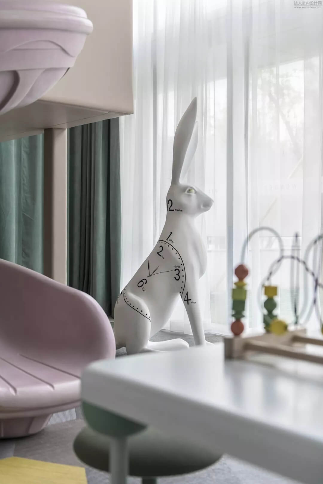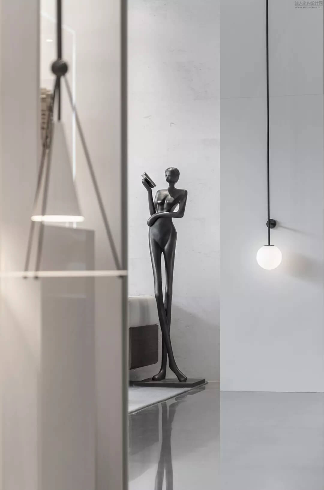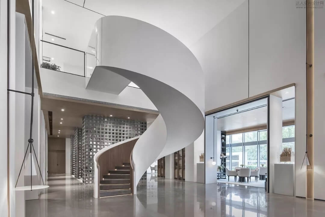 淡雅的白色配以溫馨木色的夢幻般旋轉(zhuǎn)樓梯入口,白色球體與之呼應,旋轉(zhuǎn)而上,動態(tài)感的景色盡收眼底,格子狀猶如延續(xù)的·星際穿越,感受平衡時空不同維度的交措時光,身處'空間',在無限與有限中穿梭,不經(jīng)意的轉(zhuǎn)角余光是同色的球燈相映,優(yōu)秀的設計師是會講故事的人。