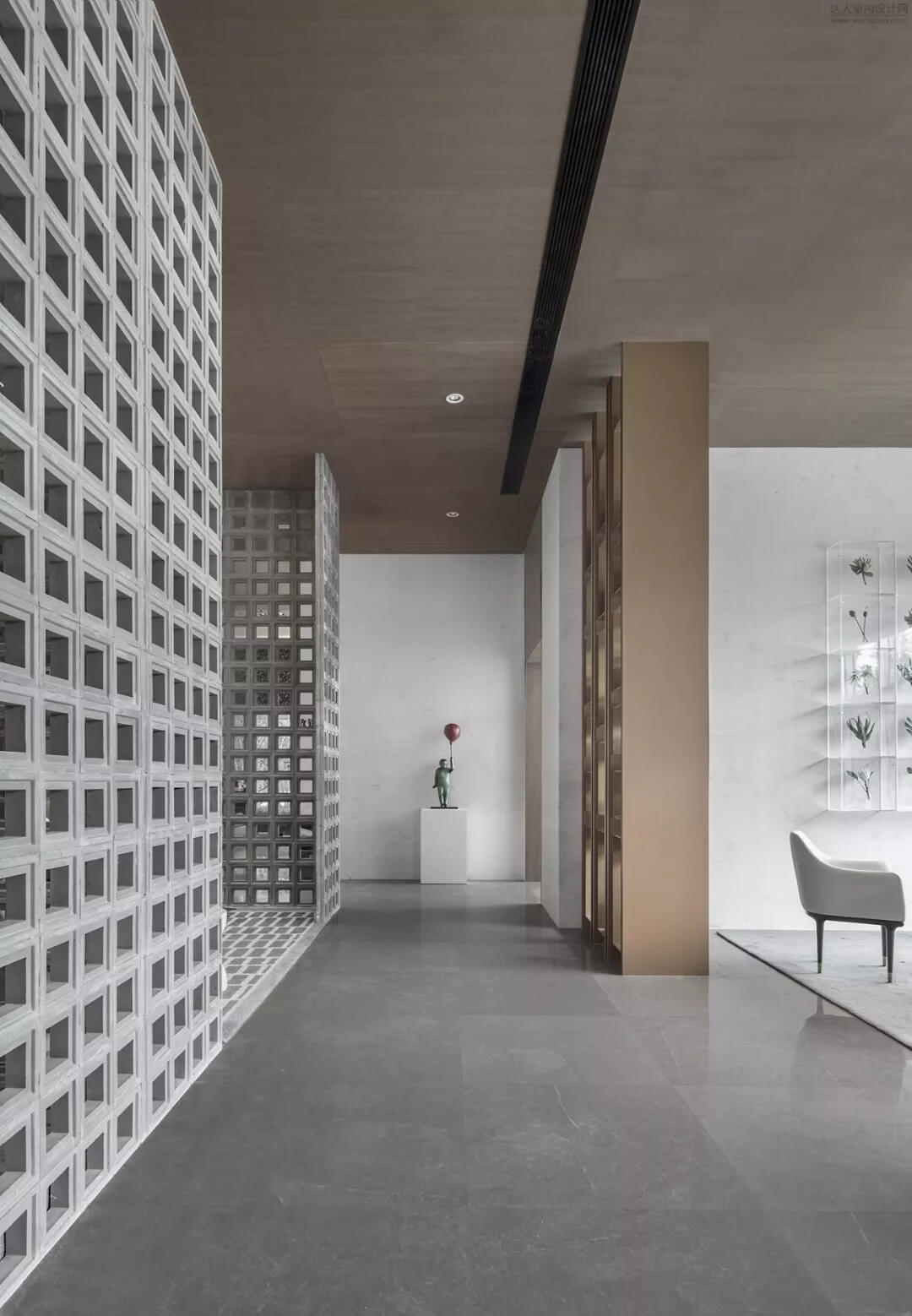 進入前廳,暗涌波動的猶如海洋的紋理型球狀醒目與空間,設計師賦予的撞色又猶如浩瀚星空。以玻璃與室外的相隔,營造視覺的感覺錯覺,仿若一體的空間綿延。
