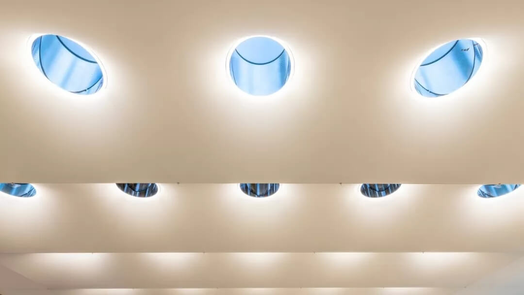 這個半透明的磨砂天窗,只允許自然光進(jìn)入。隨著自然光的變化,天窗底的燈光也會隨之變化,使室內(nèi)一直保持良好的照明環(huán)境。