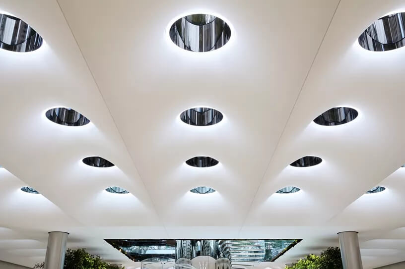 廣場上除了18個凸起天窗,還有 62 個與地面齊平的圓形磨砂天窗。