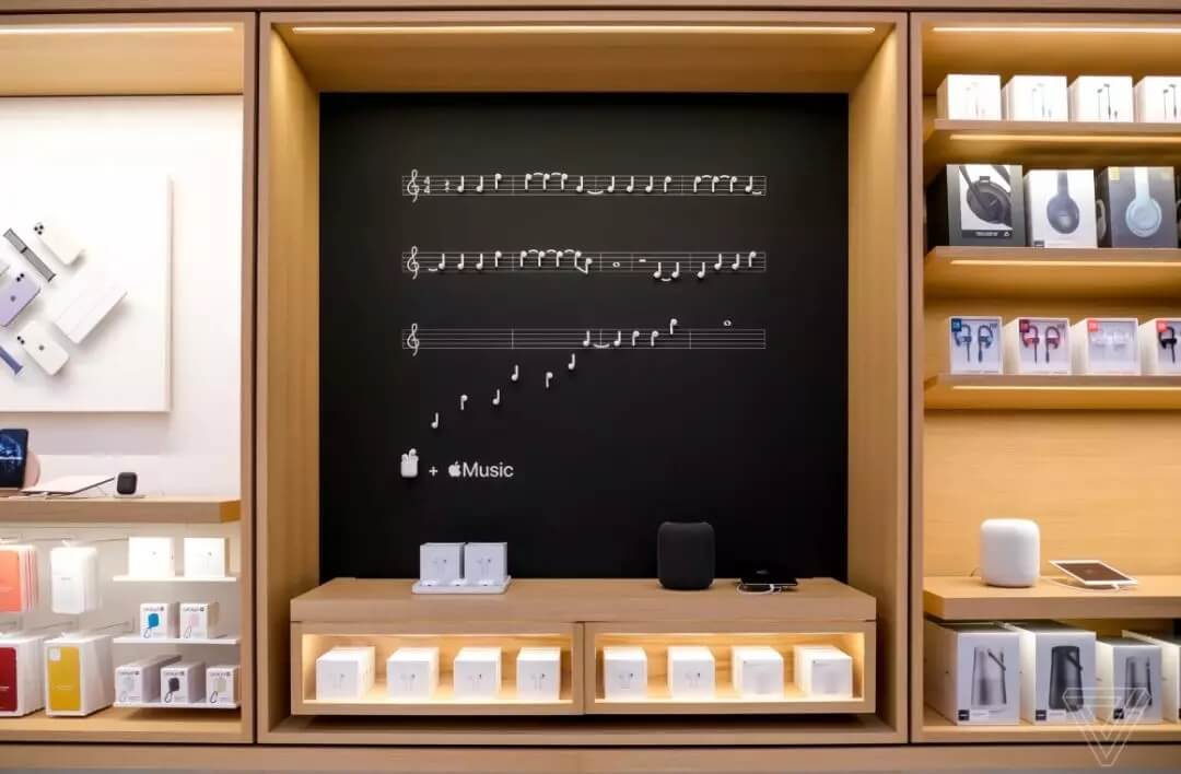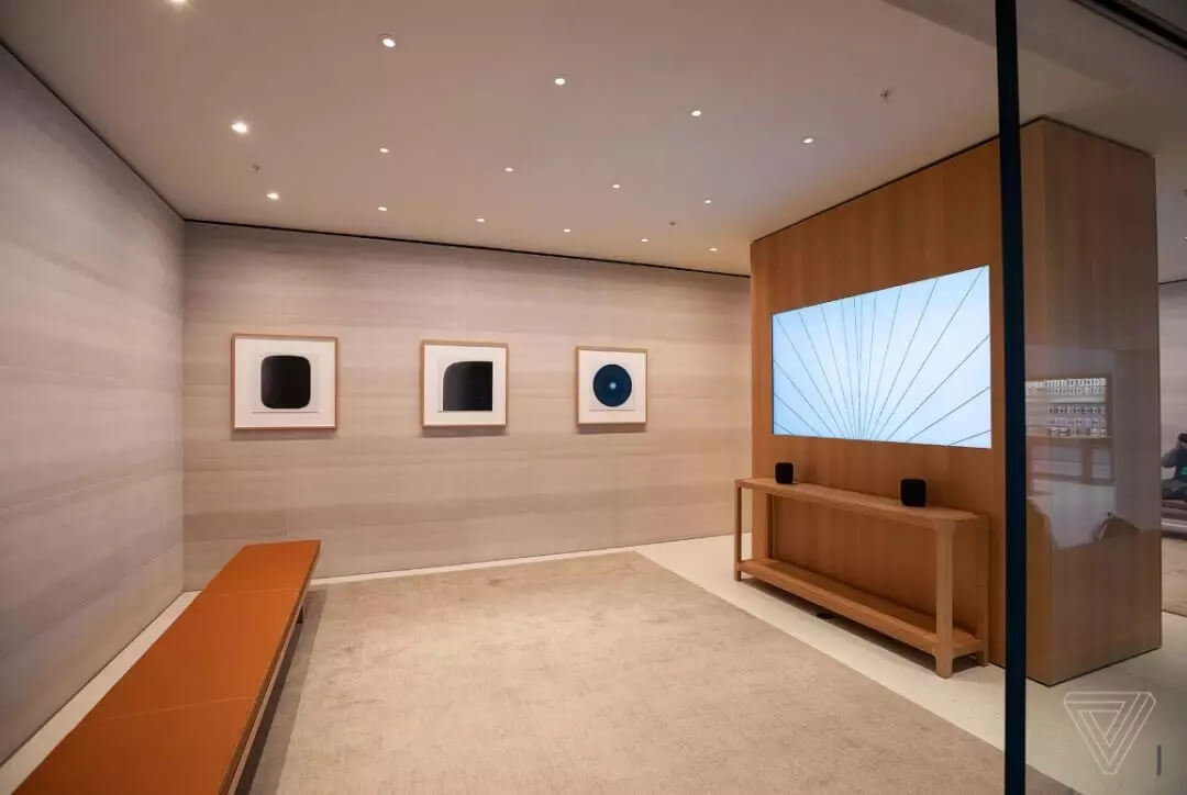 該店鋪內(nèi)重新設(shè)計(jì)了攝影大道,其背景墻適用于新款手機(jī)的拍照測試,這里也是世界上第一個開設(shè)專門展示AirPods的大道的商店。