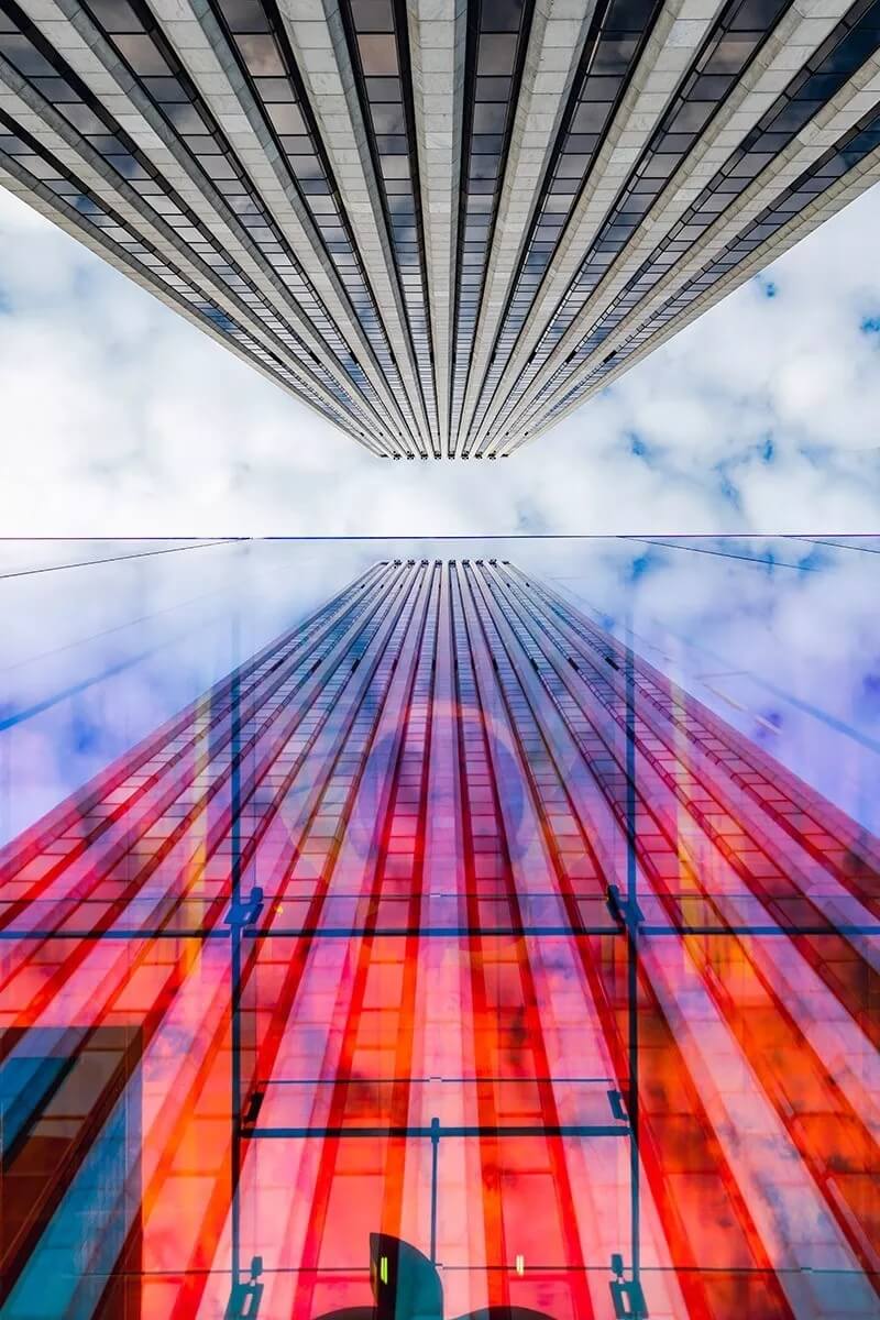 整個彩色外立面顏色根據(jù)觀看角度不同也呈現(xiàn)不同的色彩。