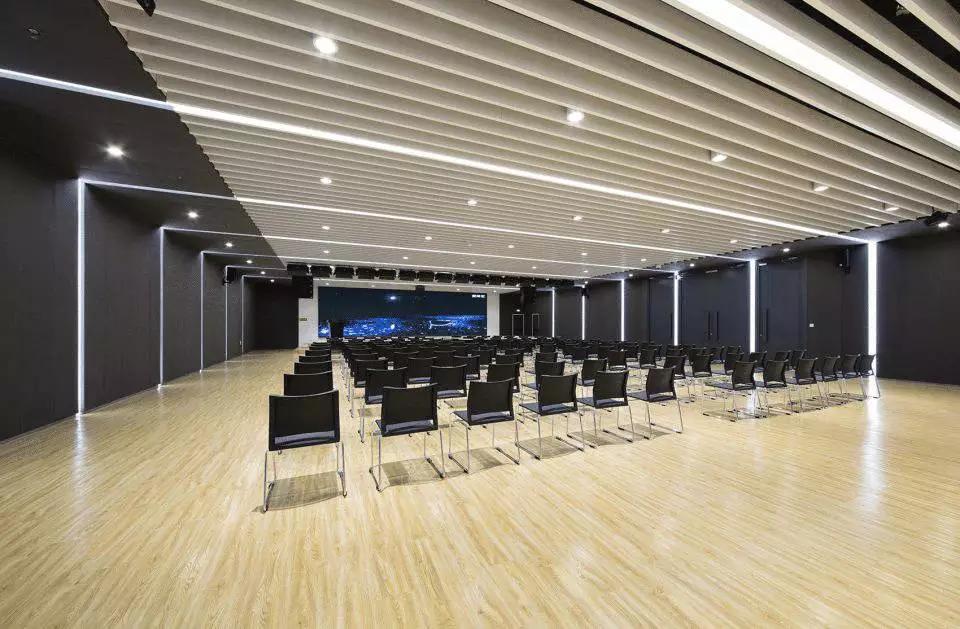 不同的空間內容對應不同的材質氛圍,從色彩到質感,再到意象化的裝飾,我們依據(jù)大堂、會議、休息室、中庭等不同空間尺度與空間內容營造新穎豐富、恰如其分的空間氛圍。溫暖的木色、混凝土板、白色大理石和白色乳膠漆為主要材料,其中報告廳大異其趣,優(yōu)雅高貴的深灰色布藝軟包與報告廳的相對集中和封閉性相得益彰。我們依托原有建筑空間序列,如大堂-電梯廳-等候區(qū)-多功能廳-VIP室-展廳,調整改變室內設計的溫度與濃度,為原本純功能理性化的空間組織蒙上一層魅力面紗,讓功能化的“經過”變?yōu)橐淮尾簧岬鸟v留與感受。