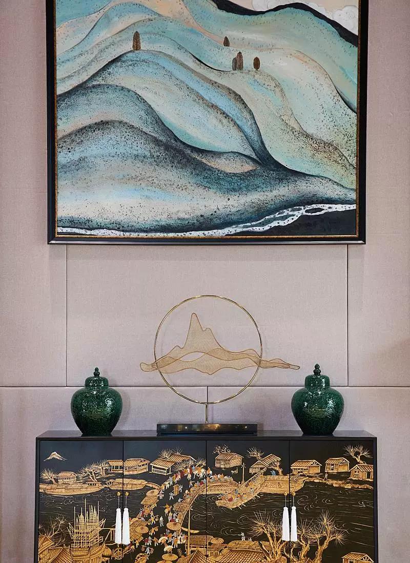 “湖光山色”項(xiàng)目位于西安歷史遺址觀光帶上,毗鄰鎬京遺址公園與斗門水庫,四周環(huán)境怡然靜雅,歷史文化氣息濃厚,近期其營(yíng)銷中心已完工,軟裝設(shè)計(jì)交由深圳印象空間呈現(xiàn)。結(jié)合周圍環(huán)境及甲方需求,印象空間最終將西安古都情懷融于作品中,于細(xì)微之處傳遞意境之美。