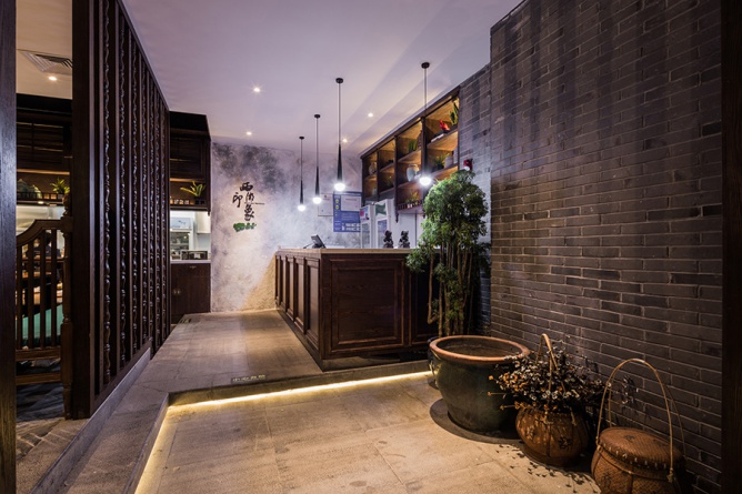 從遠(yuǎn)處望過(guò)來(lái),一座江南小院落入眼中,白墻青瓦小橋流水,以清靈的體態(tài),展示萬(wàn)般風(fēng)韻。 經(jīng)典的江南建筑別有恬靜內(nèi)秀的韻味,而江南院落給人一種,優(yōu)雅、寧?kù)o、親切的感覺(jué),正是生活在浮躁社會(huì)中的我們所缺失的,所以在本案中設(shè)計(jì)師以江南的小院的作為此次設(shè)計(jì)主題。無(wú)論是舊時(shí)還是依稀,江南水鄉(xiāng)的一山一水一物,均是文人墨客筆下的絕妙勝景,盡顯江南的風(fēng)情。而這次,跟緊我的腳步來(lái)領(lǐng)略屬于江南的意境。 整個(gè)店面的平面布局是根據(jù)江南小院建筑布局來(lái)延伸切入,以格局的形式將餐廳分成了院入口,陽(yáng)臺(tái),閨房等五大板塊。江南建筑,高低錯(cuò)落,古樸幽靜,含蓄內(nèi)斂。 有的枕山面水,有的面河而居,有的夾河而造,清澈的河水,輕盈的小橋,窄窄的街巷,深深的庭院,凝練成江南水鄉(xiāng)傳統(tǒng)民居的典型意境。 為了把這意境體現(xiàn)的淋漓盡致,設(shè)計(jì)師將入口處抬高,錯(cuò)落有致,營(yíng)造出“曲徑通幽處,禪房花木深”的氛圍,令人漸入佳境,而這對(duì)空間的分割,避免平鋪直敘的蒼白,也是為餐廳增添了幾分寧?kù)o。 |